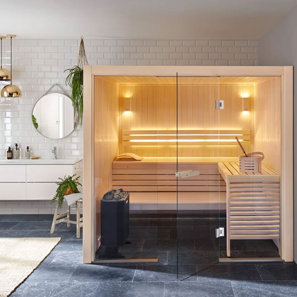 木の温かみを感じる事のできるモダンデザインと優れた保温性を兼ね備えており、TYLOのサウナヒーターと最高の相性のサウナルームです。
